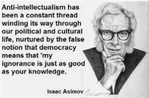 Lest anyone be surprised, an economic group seems to be making headway in influencing the North Carolina legislature to ignore reality and to substitute their own. In the complete spirit of anti-intellectualism, the people at NC-20 want to pretend their ignorance is considered just as good as anyone’s knowledge because they have *said* so. Unsuprisingly, this attitude is similar to the prevalent attitude in such states where science is also hated if it shows other dearly held delusions, like creationism, are wrong.