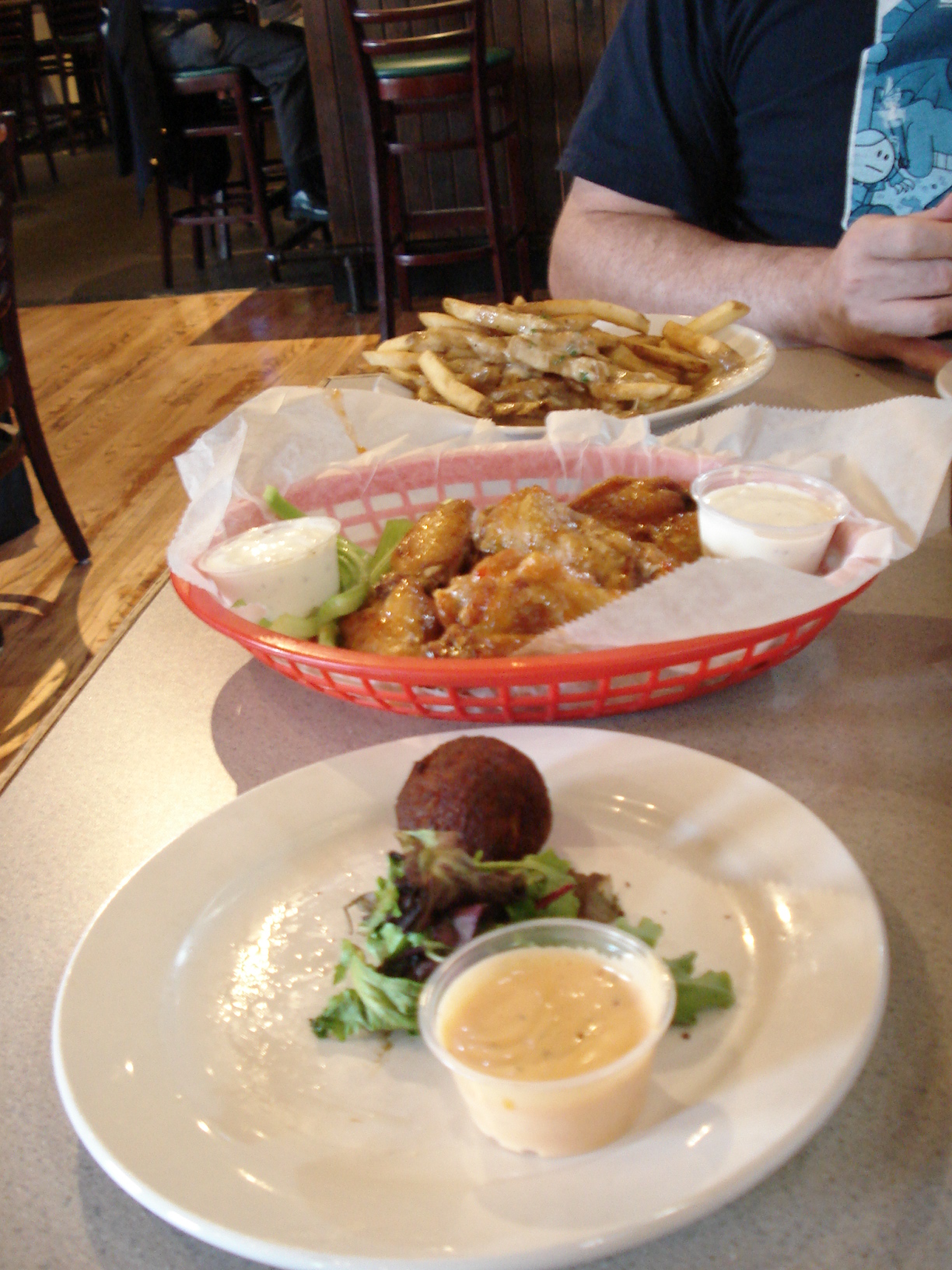 My choices for beer/food combos? Hoppy Trails with the cheese balls, the hefe with the wings and the lager with the poutine.