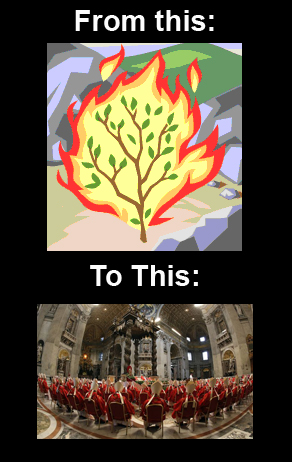 bush-and-cardinalsIn a rather absurd display of supposed democracy, we have cardinals voting for the next pope.  Now, if this god of theirs wanted a certain person, surely it could be more clear about it?  We had burning bushes, prophets, who were supposedly accurate,  guided right to the correct person, etc in the bible, but here in 21st century Earth, we have a bunch of old men casting ballots. Seems a bit of a letdown.  Unsuprising in this age of people not accepting claims of nonsense so readily.