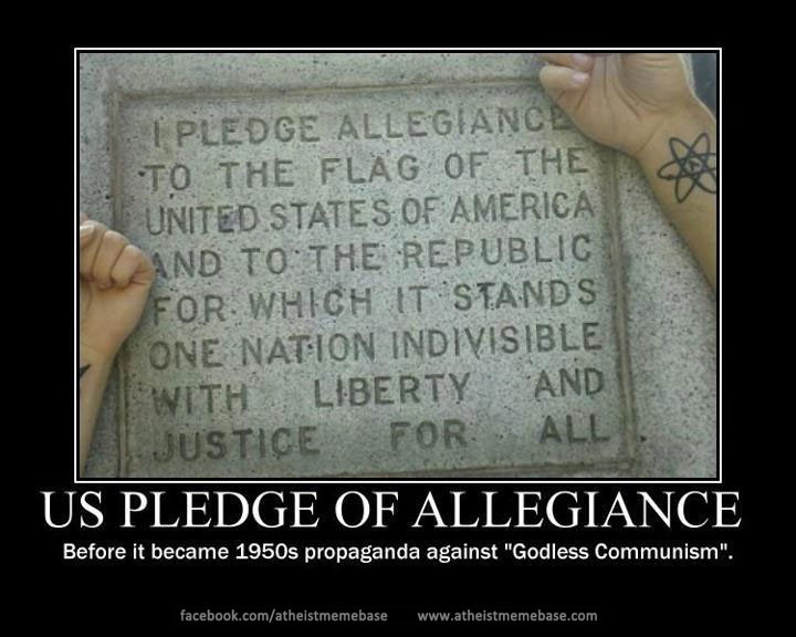 One argument used by Christians is that this isn’t “just” their god.  That is always a hilarious one since it shows that these people have no problem in lying when convenient.  Now, if this isn’t only the Christian God, then  what need for there is this phrase?  What god is capitalized if not the Christian god in the US?  It’s about as ridiculous as Christians who try to claim that the Latin cross isn’t a symbol of their religion when they want to force it on others in public spaces.  Witness Justice Anthony Scalia’s ridiculous lies “It’s the — the cross is the — is the most common symbol of — of — of the resting place of the dead, and it doesn’t seem to me — what would you have them erect? A cross — some conglomerate of a cross, a Star of David, and you know, a Moslem half moon and star?”   All of the pitiful willful ignorance and arrogance of someone who hasn’t a clue what other cemeteries look like.