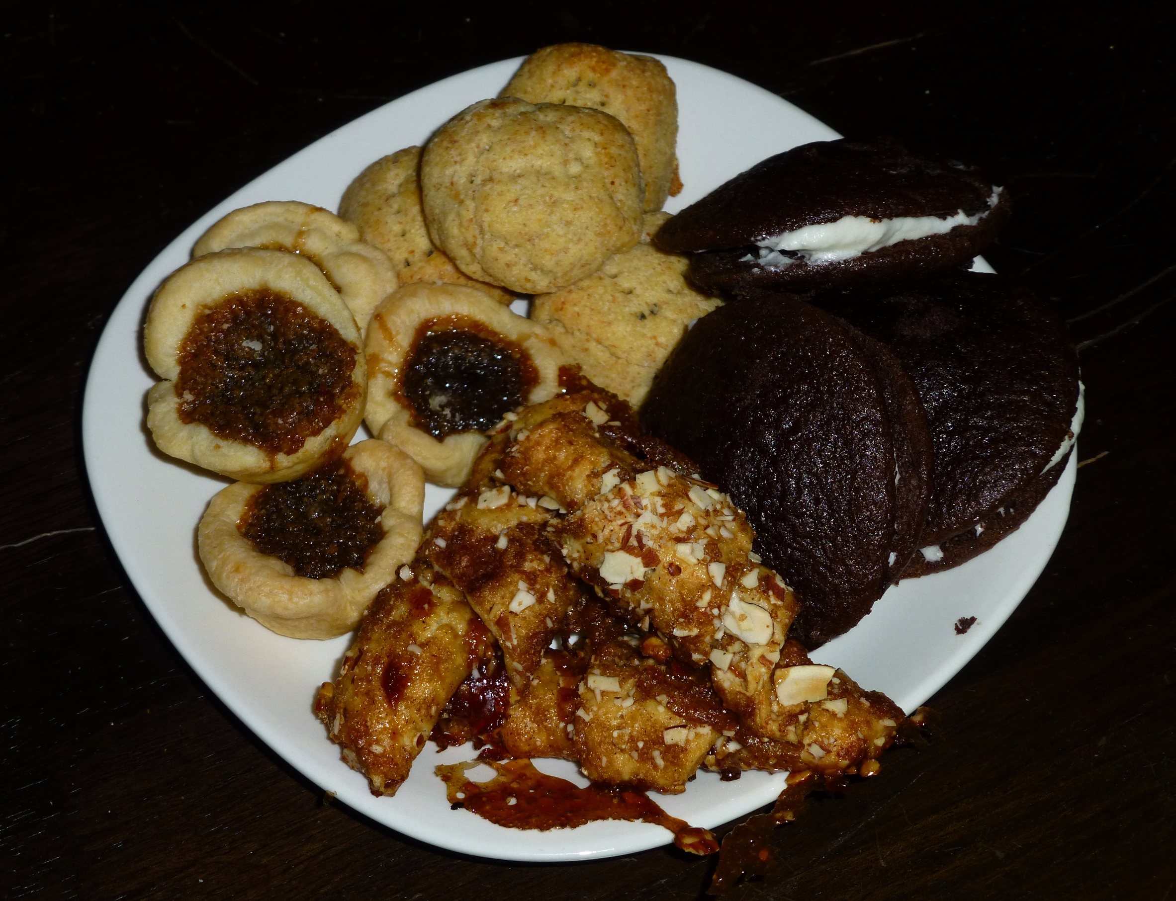 Mamouls (or ma’amouls) are a filled cookie from the east end of the Mediterranean. The cookie is made with coarsely ground semolina, the same wheat that most pasta is made from. Recipe I used is here (I didn’t have orange flower water so I didn’t use it). Often these are made in special press molds, but I just made them as a disk of dough held in my hand and closed over the filling. The filling was a mix of dates, sugar and rose water blitzed in a food processor until mostly smooth (take the seeds out of the dates). In the US, Cream of Wheat cereal (a to-be cooked cereal like oatmeal) is the best source for semolina/farina. I love these with tea.
