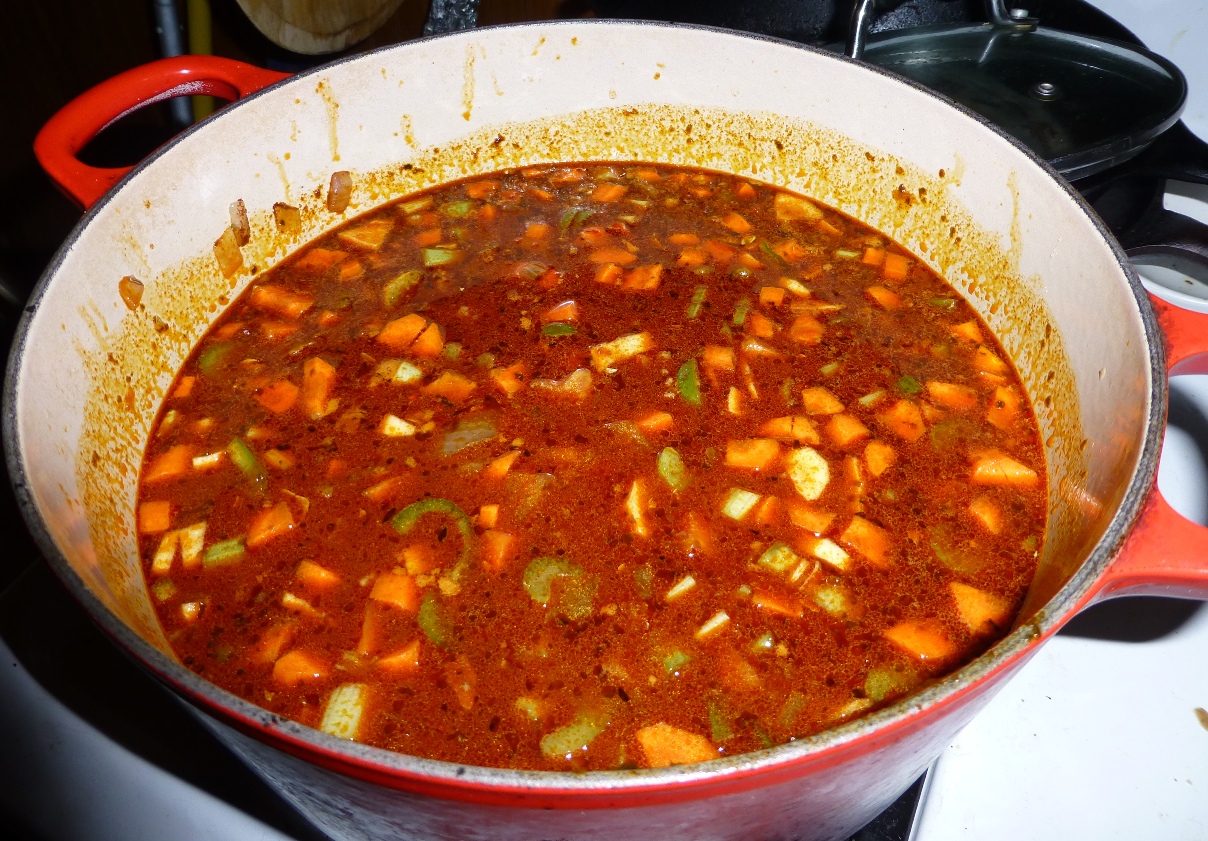 First up is beef goulash. I have about half my ancestry as Hungarian but my relatives weren’t much on the cooking. So I found a goulash recipe at one of the places we visited up in the Finger Lakes. It was pretty much like the one at Saveur, so I saw what was common between the two and went with that. The sweet taste of the paprika is very prominent, as well as the sweetness of the root vegetables. One of those veggies was parsnips. I remember trying them when I was young and finding them nasty. I rather like their sweet muskiness now. I did not use potatoes in my version. I used the spaetzel noodles with it and of course, crusty rolls.