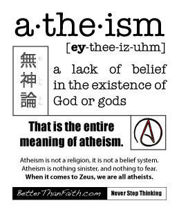 In the vein of misapprehensions, in my Sunday paper, there is a new God Squad article (can you have a squad with just one person?). Herein, Rabbi Gellman addresses two querents’ questions about atheism and why this god seems rather inept. As always, my posts aren’t short at all. Read at your own risk. (NOTE: this post does rehash many arguments made before on this blog. I do wish theists would come up with new things more often. The “non-empirical” claim was pretty original but awfully easy to show how it failed. Oh well, it keeps my typing skills healthy.)