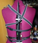 Once I cut out the worbla after finessing the cardboard patterns, I needed to decide how thick it had to be. A tutorial on the worbla website had how to avoid using a complete sandwich of worbla/craft foam/worbla and I was able to cut down on how much I needed. You can see the technique here. You can also see how I rigged the strapping. I used plastic clips to hold the straps where I didn’t use elastic bands.