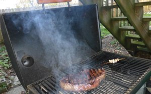 I found a marinade on Saveur’s website. Since I didn’t have fennel, I used some star anise that I’ve had lying around.   I generally don’t care for the flavor of anise/licorice but I do like it in combination with other things. Spouse made a very hot fire in the charcoal grill and we had flames licking up around the meat as we like, and grilled it to a nice medium rare. Cut on the bias, it was tolerably tender and had a great flavor. We had it with fried potatoes and onions.