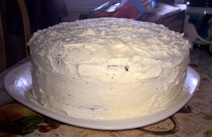 Back to some fun stuff. I found a recipe for German buttercream frosting on Serious Eats, one of my favorite food sites. This stuff is very good, not too sweet, and full of tasty tasty fat! I recently made a spice buy at Penzey’s, my favorite socially concious spice merchant, and used my new vanilla beans. I did end up using salted butter which was noticeable but fine on a chocolate cake, rather like the salted caramel craze. I just used a boxed chocolate cake mix.
