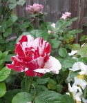 Our garden is doing well this year. My irises are finally up and lovely. The red/white rose is one we’ve had for years.