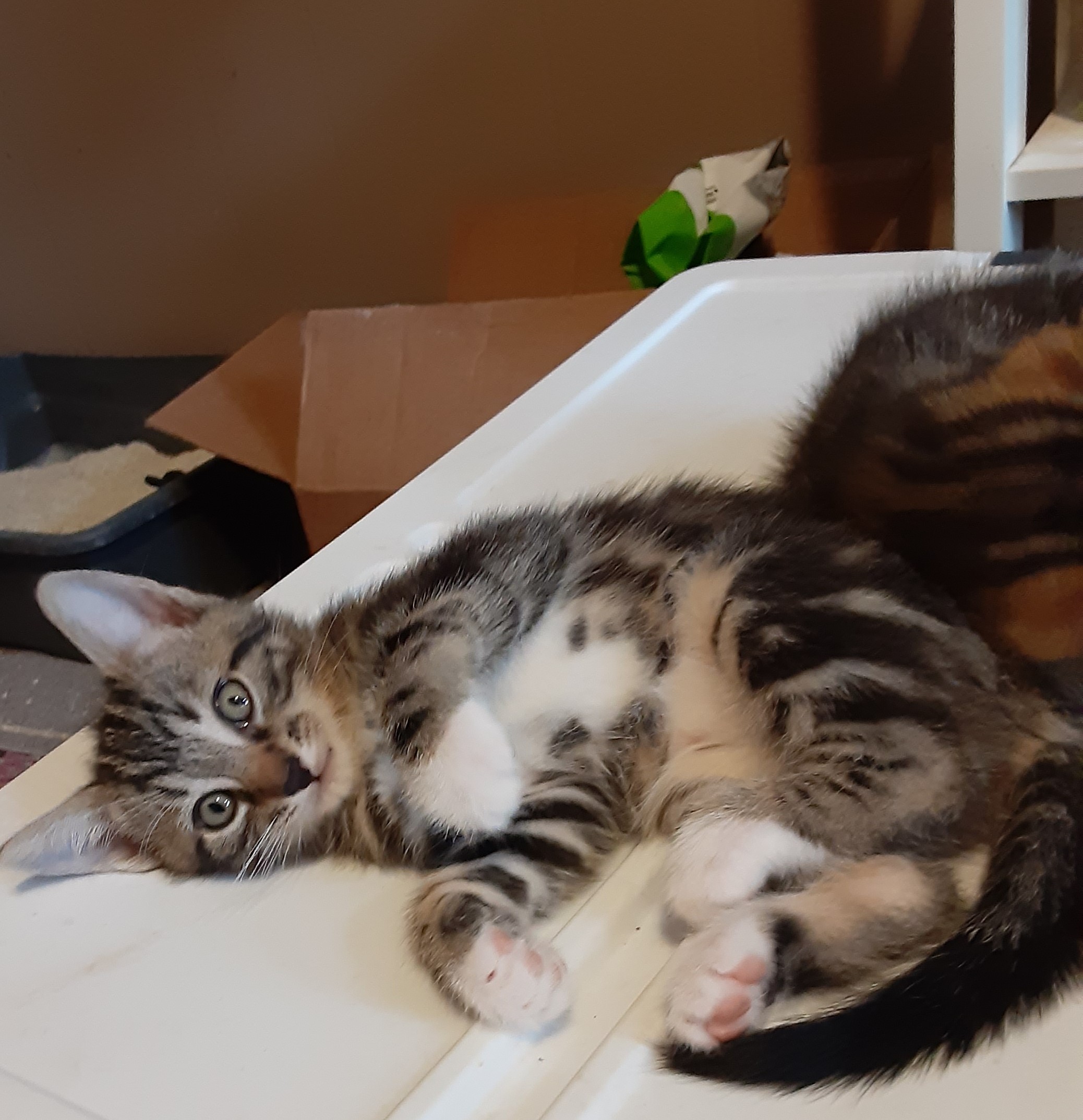 The nice thing about cats in boxes is that they unpack (and repack) themselves. 😀 I think a Box O’ Many Kittehs is inevitable when one has little ones in the house – somewhere around here is a snapshot of my minuscule Dark Legion of Cats in their cardboard clubhouse, circa 2002.