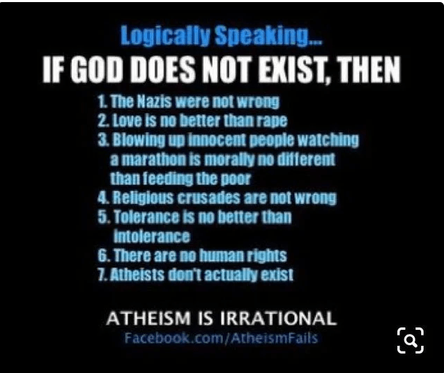 If god exists, rape is ok if you marry the victim, murder is ok if the victim dies after 2 or so days, and genocide is ok among other ok things.