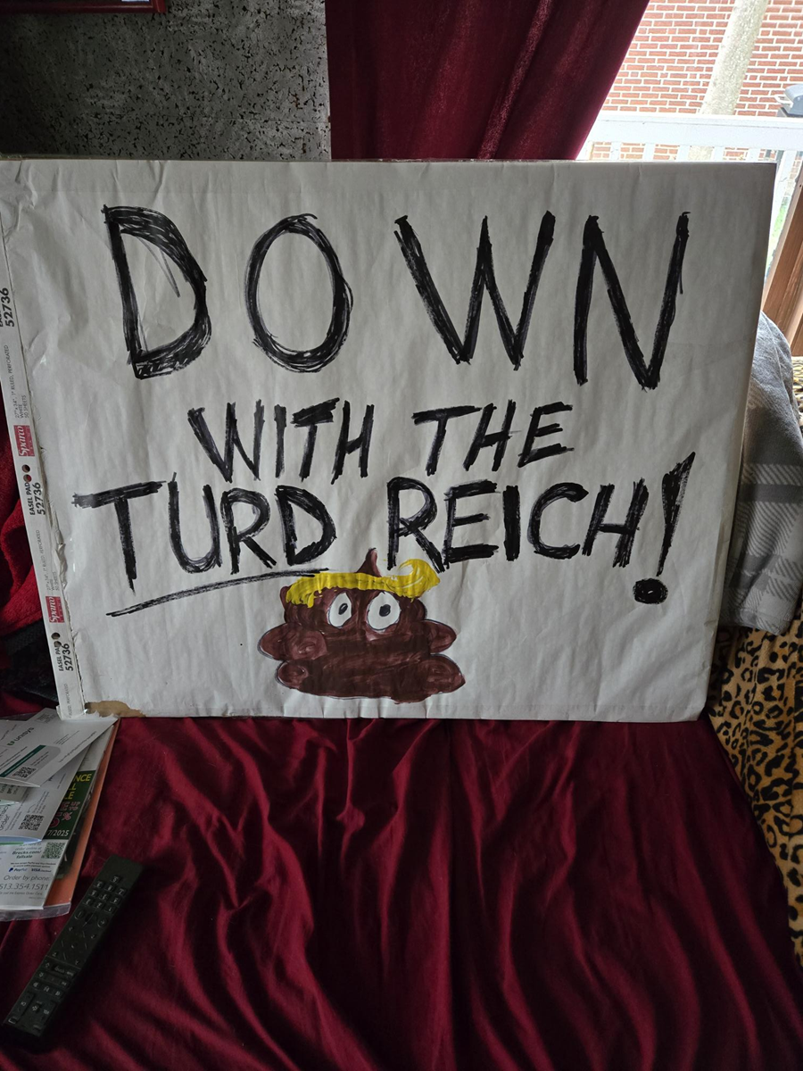 I took my old baby trump balloon and my husband was willing to hold the sign: