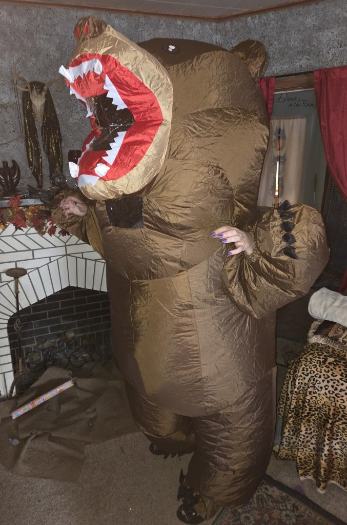 And just so you can see it, here’s the inflateable bear costume I got. I wanted to carry a sign that had “choose the bear” on it riffing on the man vs bear internet meme. The silly thing is huge, about 7 feet tall. I got it on temu for not much. My face is a little above where that dark window is under the bear’s chin. Unfortunately, I know I’ll have a chance to wear it in the future.